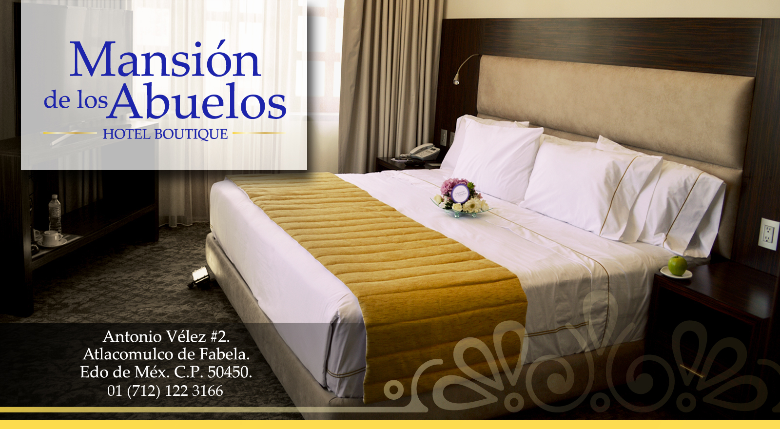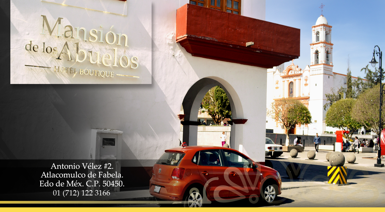 El Hotel Boutique Mansión de los Abuelos® se encuentra ubicado en Antonio Vélez #2 esquina Isidro Fabela pleno centro histórico de Atlacomulco, Edo de México y con excelente vista a la plaza y Parroquia de nuestra señora de Guadalupe.